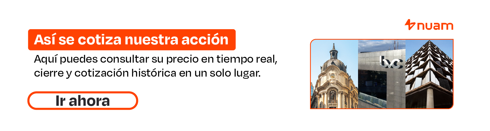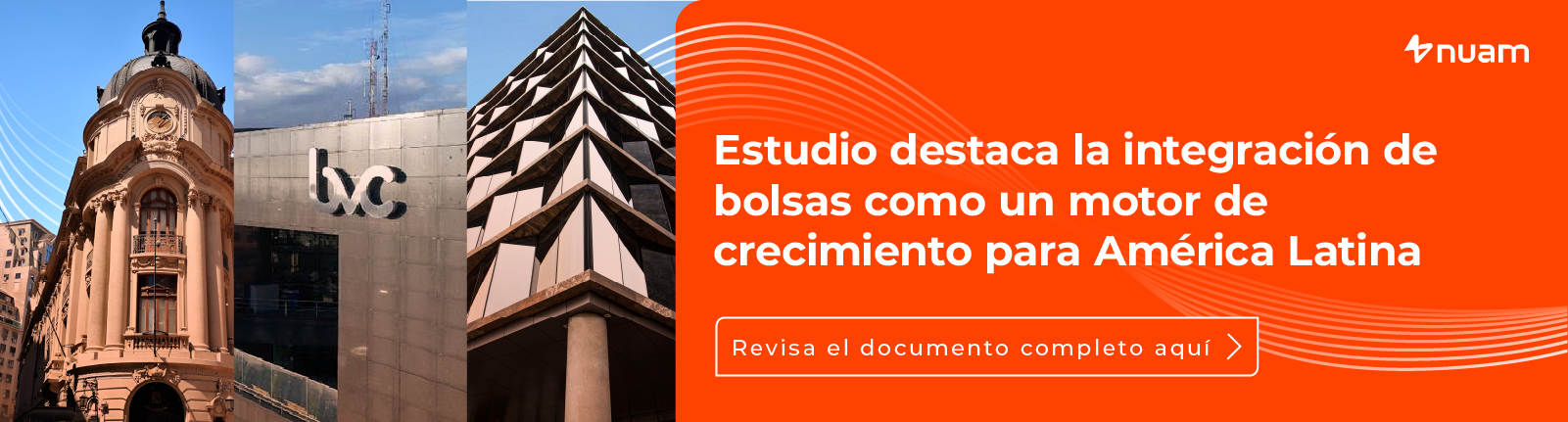 Somos nuam la nueva Holding Regional que integra las Bolsas de Santiago, Lima y Colombia convirtiéndolas en un único mercado. Buscamos desarrollar nuestras economías, a través de una oferta más dinámica y de vanguardia, que permita potenciar el crecimiento de las empresas y que entregue valor a los inversionistas por medio de un portafolio más atractivo y diversificado. Estamos convencidos que con nuam podemos crear oportunidades de prosperidad para todos.